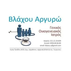 Η κ. Βλάχου Αργυρό είναι Γενικός Οικογενειακός Ιατρός και διατηρεί ιδιωτικό ιατρείο επί της οδού Αγίας Τριάδος, Αχαρναί Αττικής, όπου δέχεται κατόπιν τηλεφωνικού ραντεβού.